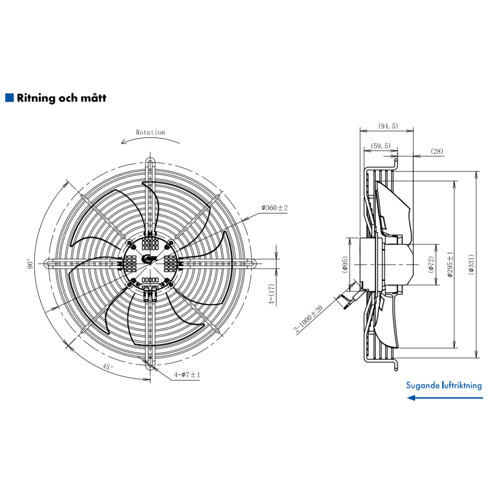 AXIALFLÄKT A3P300 M. KORG SUG. EC 230V