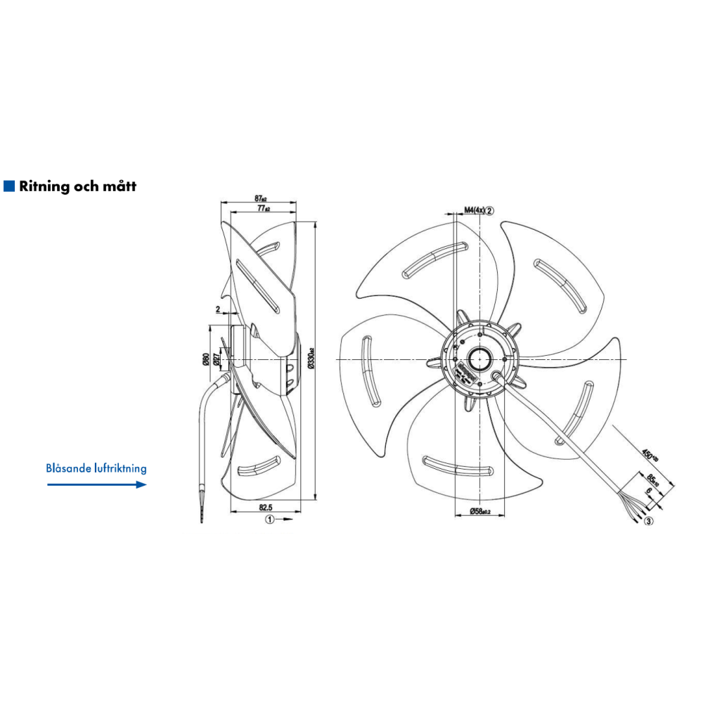 AXIALFLÄKT 4-P. 330MM M. KORG BLÅS. AC 230V