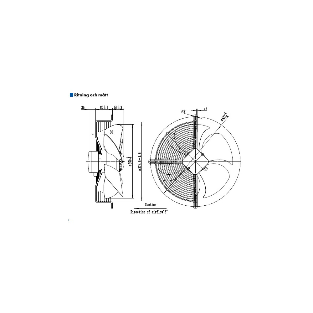 AXIALFLÄKT 4-P. 350MM M. KORG SUG. AC 230V