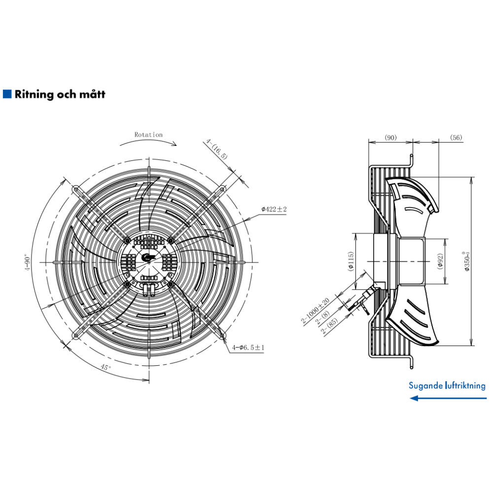 AXIALFLÄKT A3P350 M. KORG SUG. EC 230V