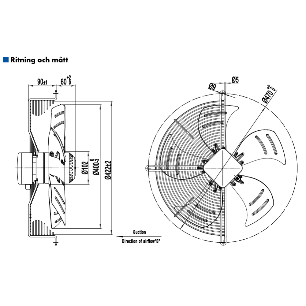 AXIALFLÄKT A4D400S M. KORG SUG. AC 400V