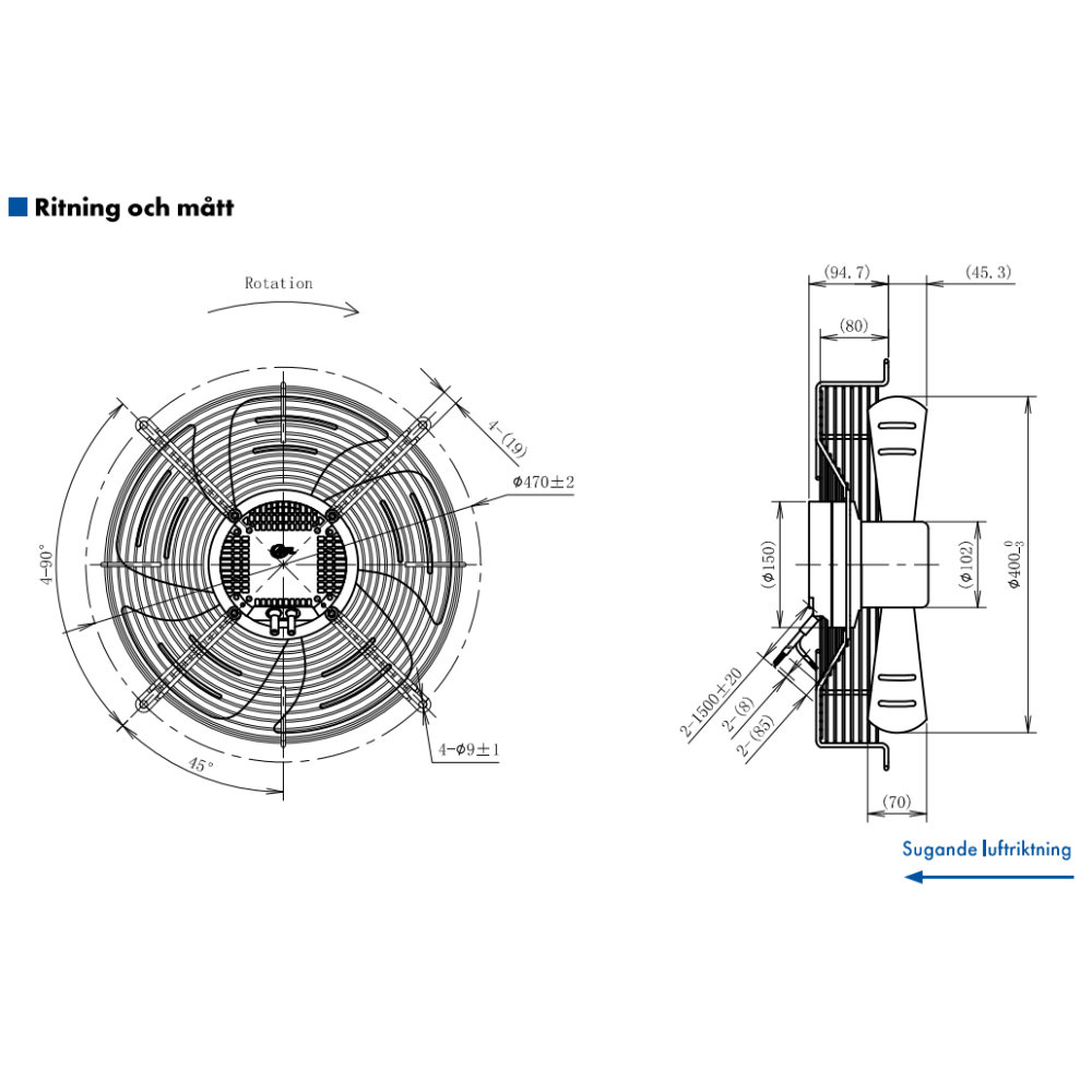 AXIALFLÄKT A3P400 M. KORG SUG. EC 230V