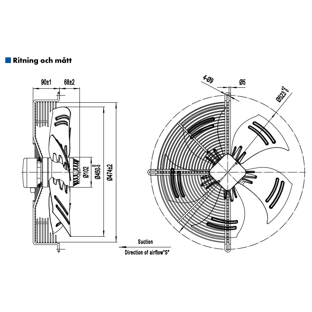 AXIALFLÄKT A4D450S M. KORG SUG. AC 400V