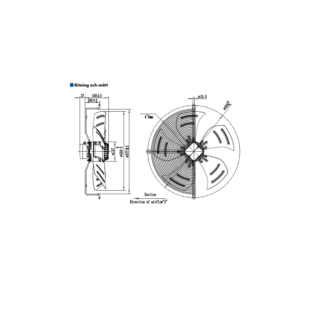 AXIALFLÄKT 6-P. 550MM M. KORG SUG. AC 400V