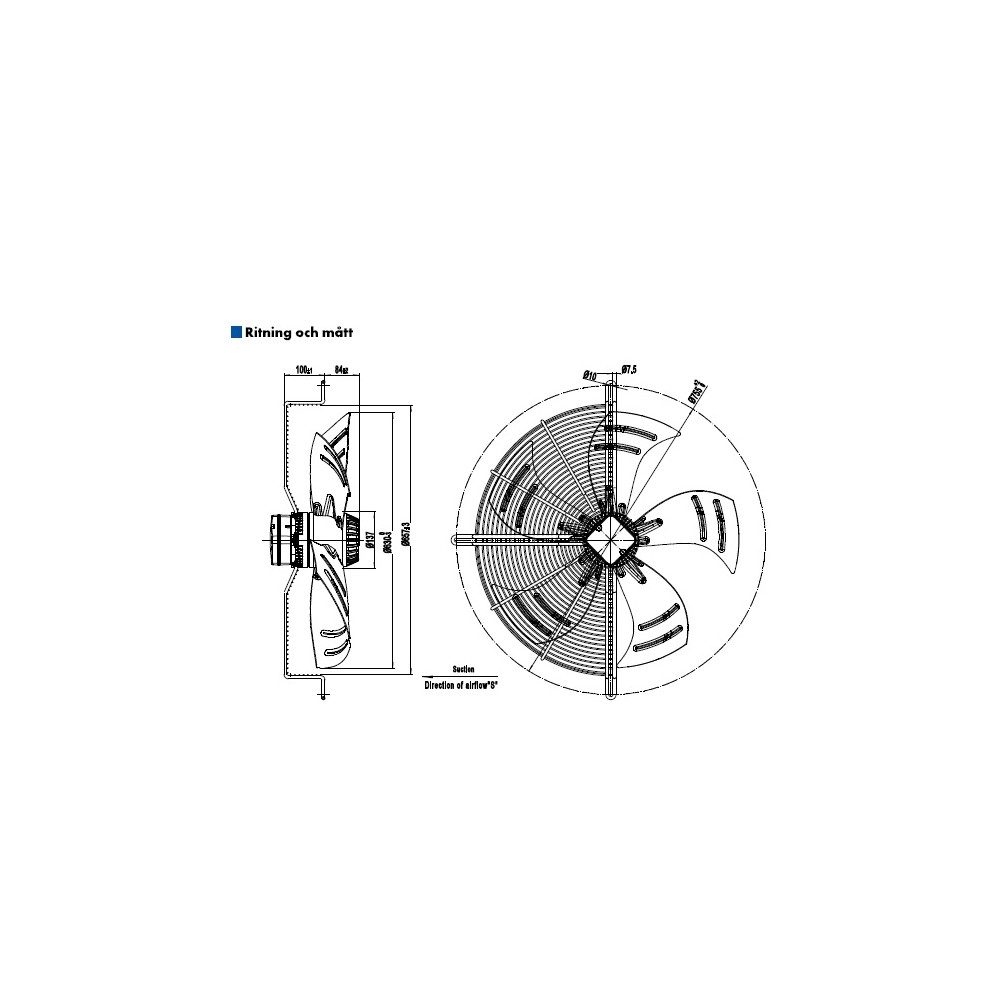 AXIALFLÄKT A6E630S M. KORG SUG. AC 230V