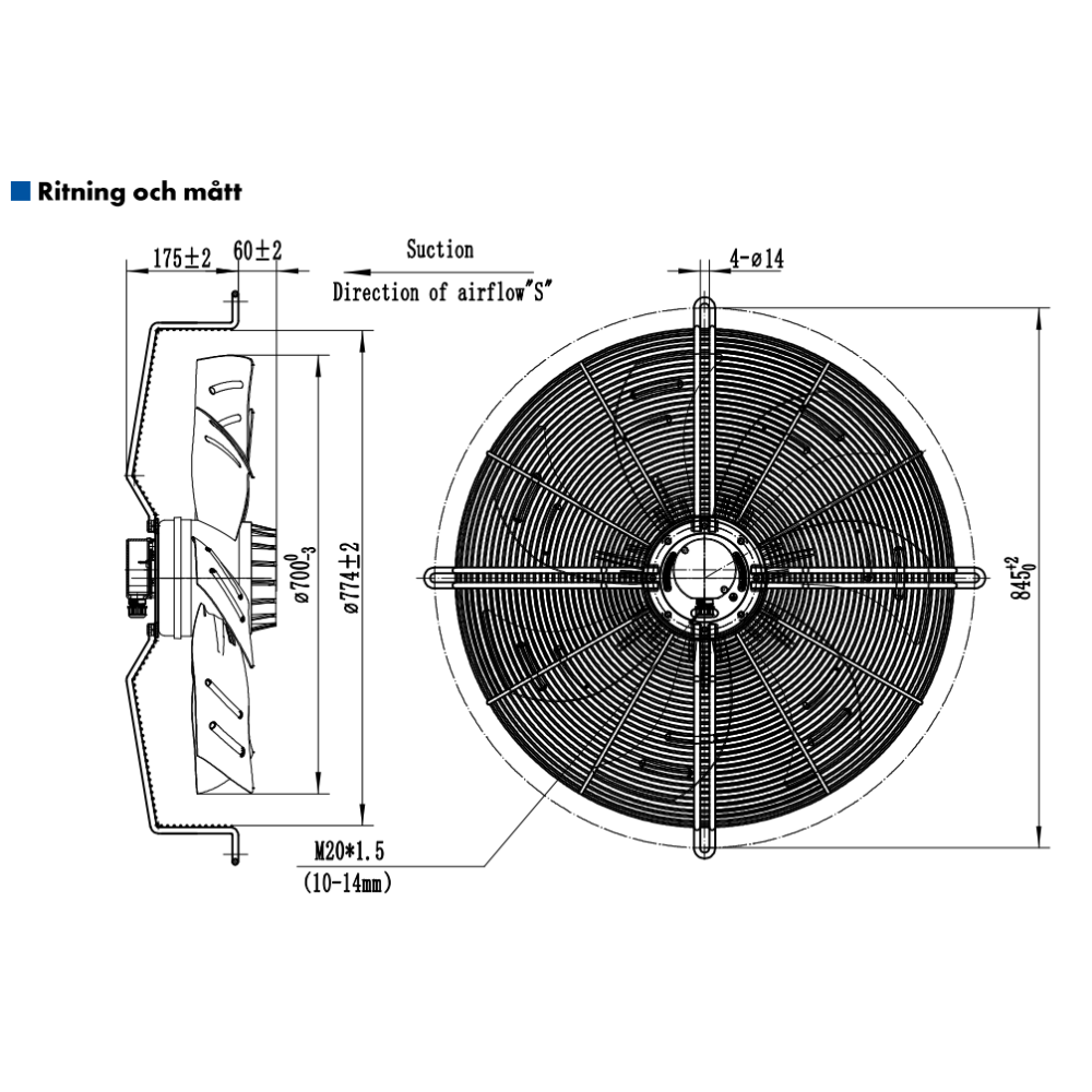 AXIALFLÄKT A6D710S M. KORG SUG. AC 400V