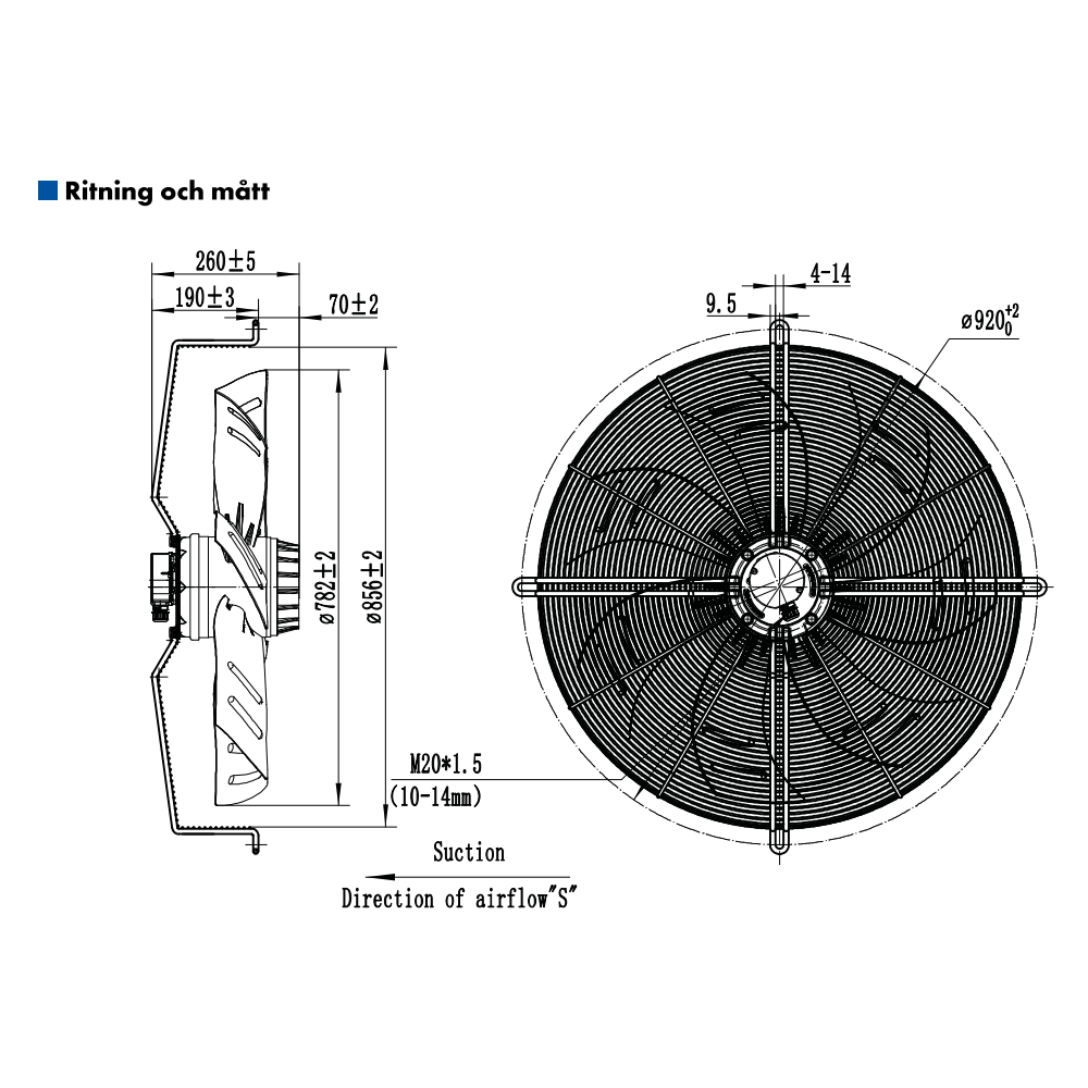 AXIALFLÄKT 6-P. 800MM M. KORG SUG. AC 400V