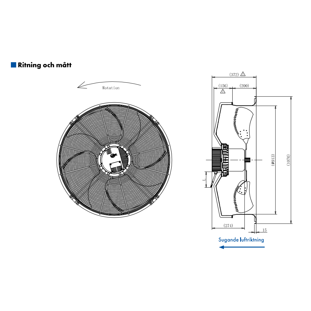 AXIALFLÄKT A3P910 M. KORG SUG. EC 400V