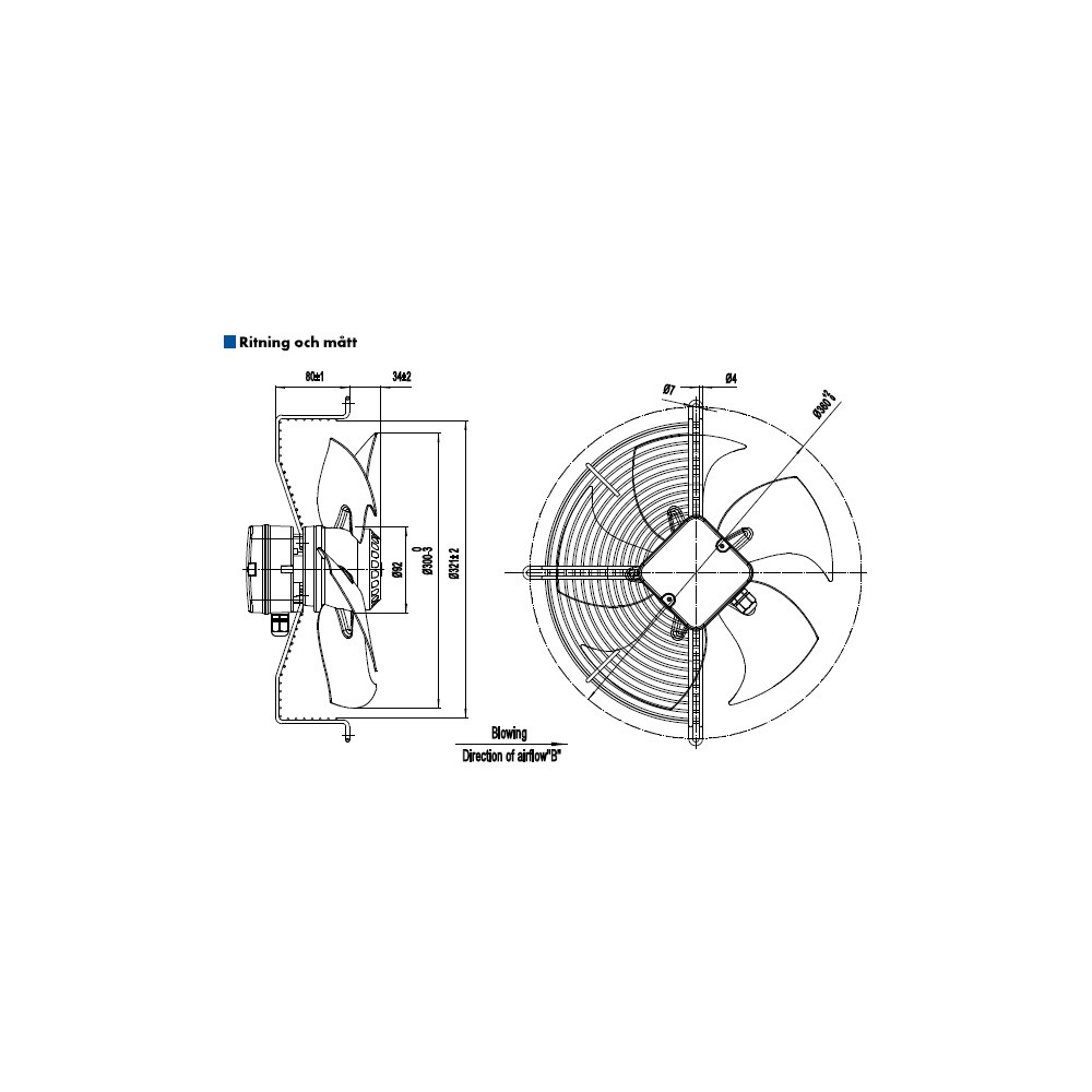 AXIALFLÄKT 4-P. 300MM M. KORG BLÅS. AC 230V