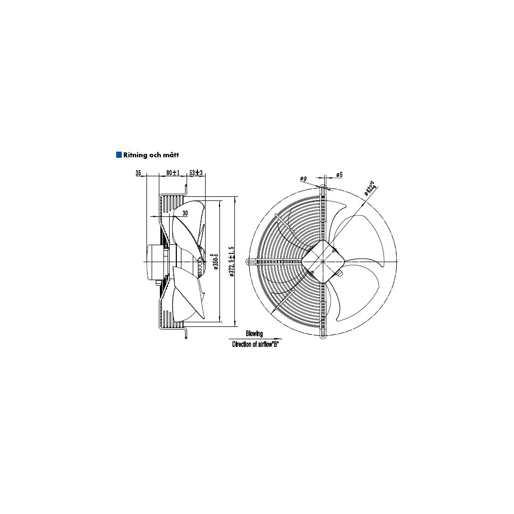 AXIALFLÄKT 4-P. 350MM M. KORG BLÅS. AC 230V