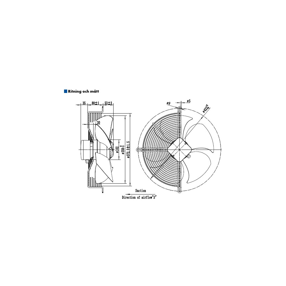 AXIALFLÄKT 4-P. 350MM M. KORG SUG. AC...