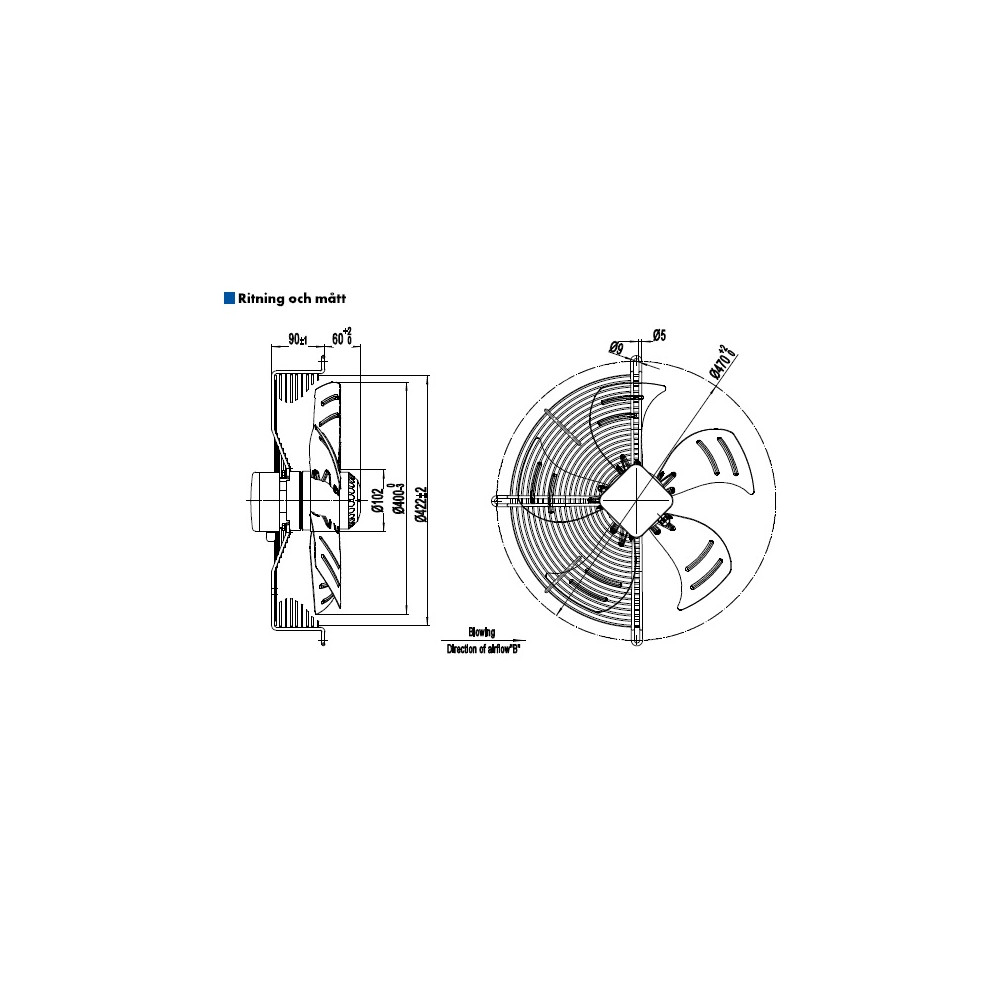 AXIALFLÄKT 4-P. 400MM M. KORG BLÅS....