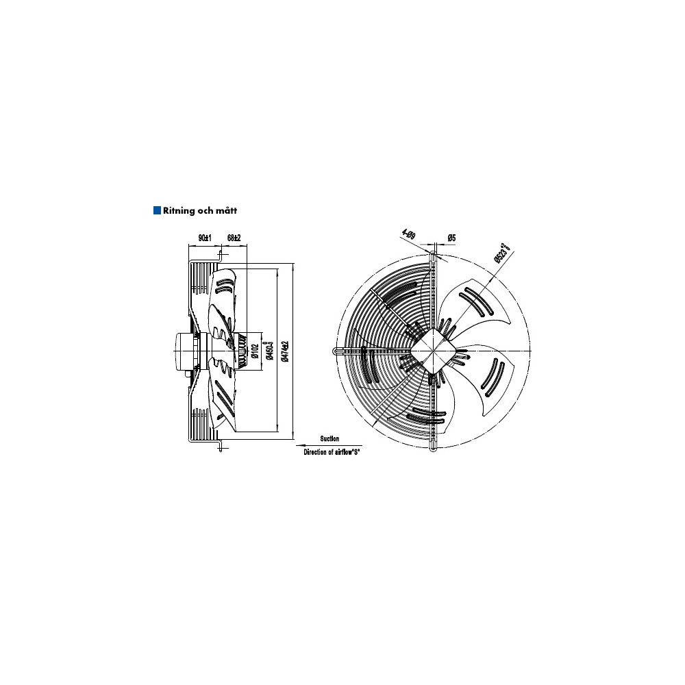 AXIALFLÄKT 4-P. 450MM M. KORG SUG. AC...