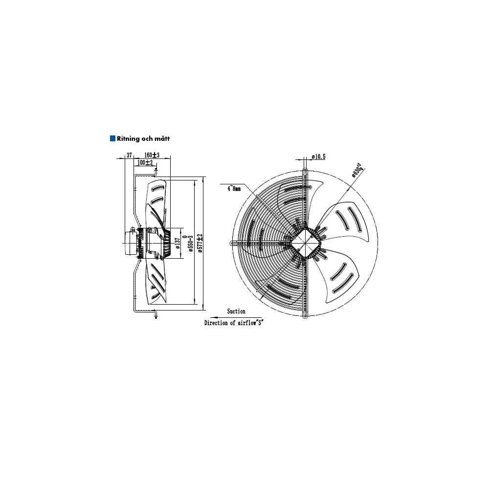 AXIALFLÄKT 6-P. 550MM M. KORG SUG. AC...