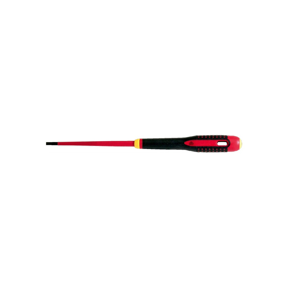 Skruvmejsel utvecklad enligt en vetenskaplig ERGO™ process. Testad och godkänd för arbete under spänning upp till 1000 V. Beständig färgmärkning och symbol på handtaget för lätt identifiering av rätt spets. Av högkvalitativt stål med isolermaterialet gjutet direkt på klingan. Klingan är 30% smalare än en standardklinga på en isolerad skruvmejsel vilket ger bättre åtkomlighet. ISO 2380 / DIN 5264. Individuellt kontrollerade och tillverkad i enlighet med IEC 60900.