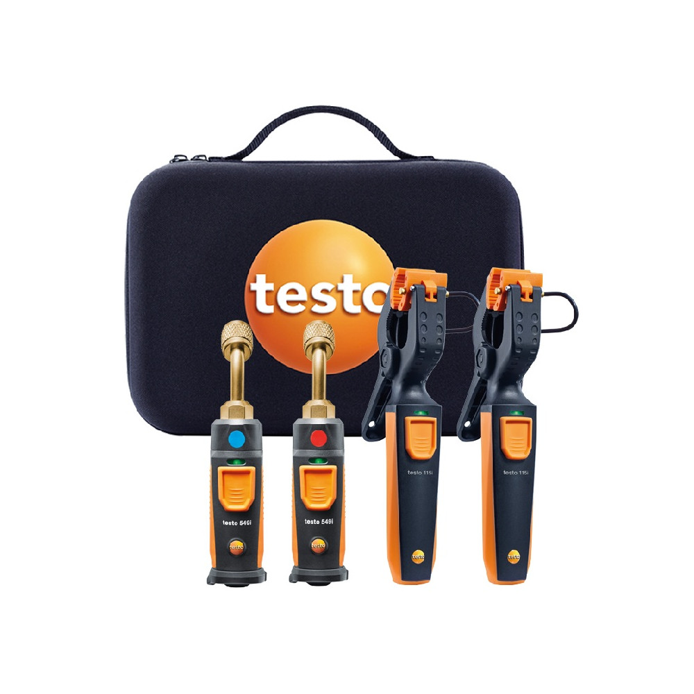 Detta kompakta mätset innehåller tryckgivaren Testo 549i samt rörtemperaturgivaren Testo 115i (två av varje). Båda dessa givare har 100 meter Bluetooth-räckvidd för enkel hantering av mätpunkter som befinner sig långt från varandra.