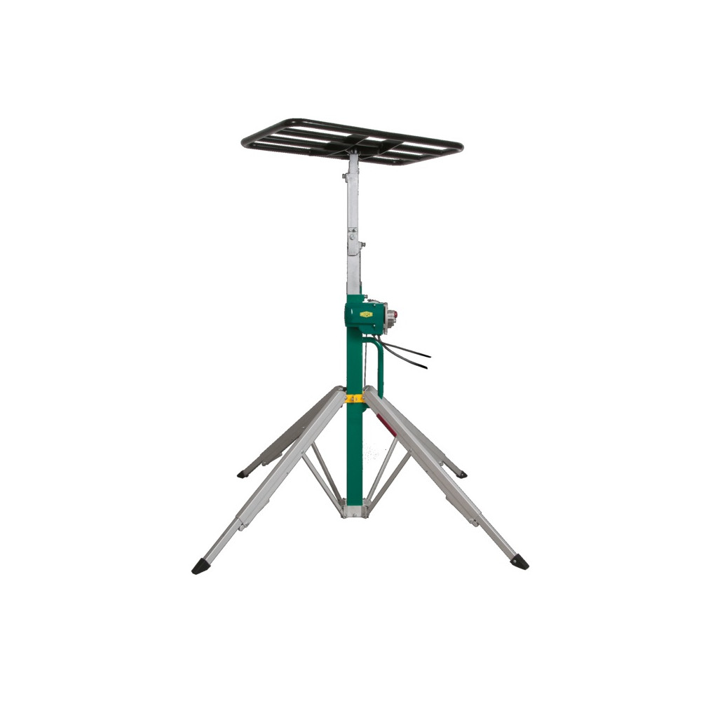 Denna monteringslyft stödjer dig i säker och enkel montering av laster som väger upp till 120 kg. Teleskoparmen kan förlängas upp till 3 meter med hjälp av fjärrkontrollen.