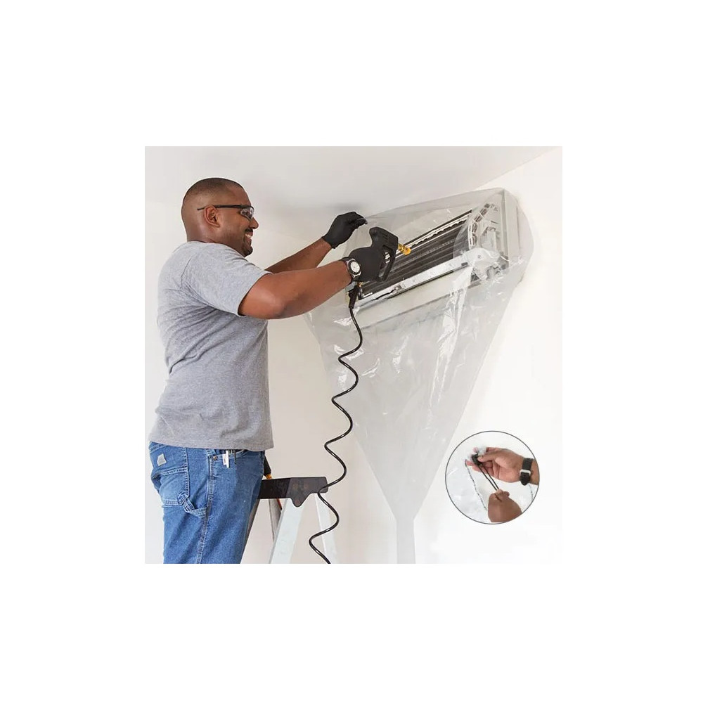 Återanvändbar 360° skyddskåpa för ren och snabb rengöring av väggmonterade splitaggregat. Perfekt att använda tillsammans med EVOCLEAN®, EVOSTEAM® och CLIMWASHER PRO+.