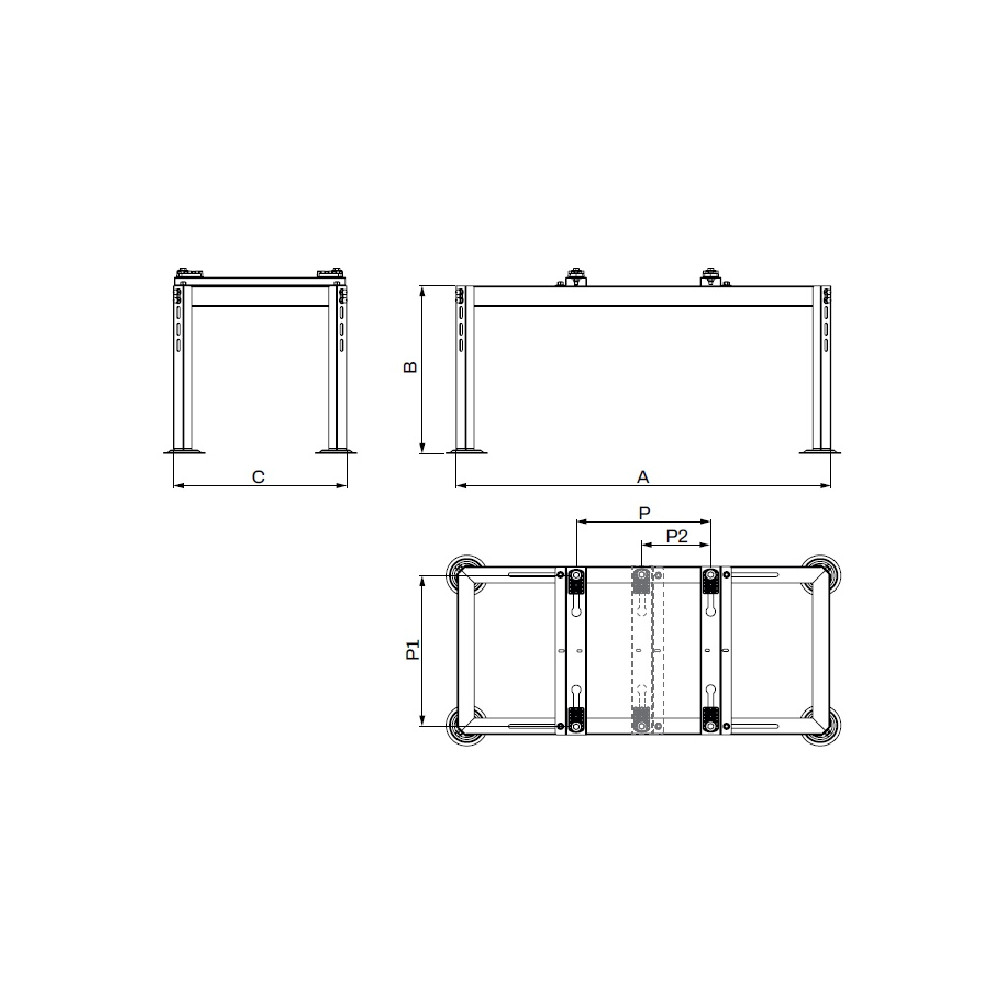 | Modell | Bredd mm | Höjd mm | Djup mm | P mm | P1 mm | Max vikt kg |