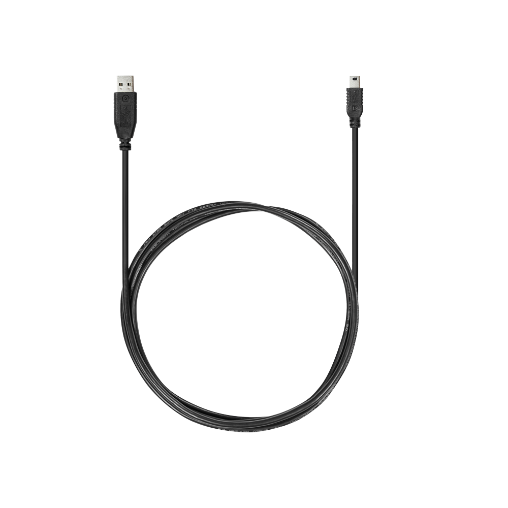 USB-kabel för anslutning till dator med USB standardkontakt och yttre enhetheter med USB mini B kontakt.